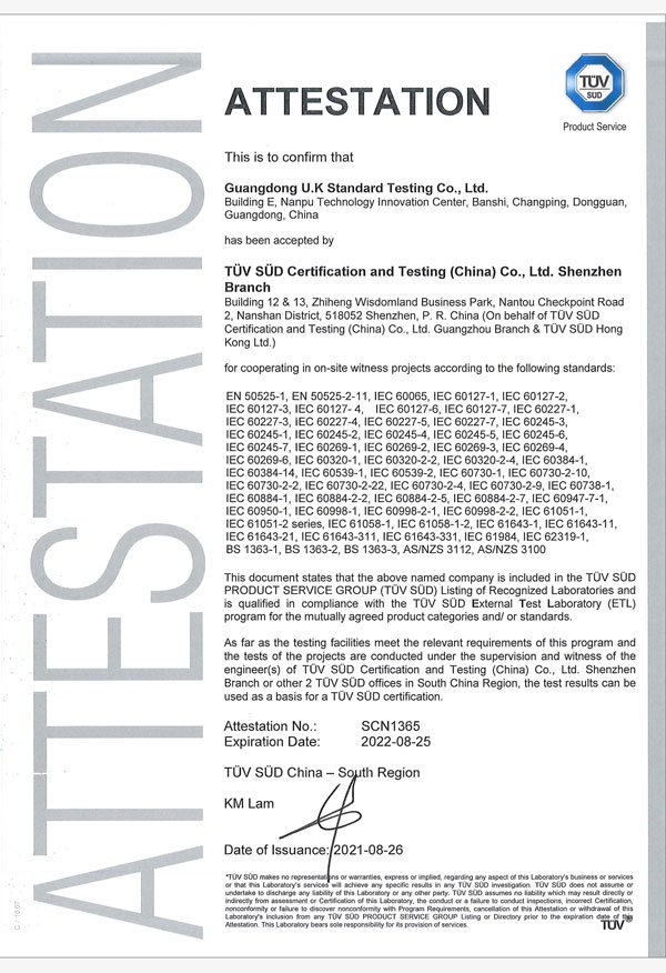 廣東優(yōu)科檢測(cè)認(rèn)證有限公司(簡(jiǎn)稱(chēng):UKK)成?于2007年,是國(guó)內(nèi)專(zhuān)業(yè)的汽車(chē)整車(chē)及零部件、電子元器件第三方檢測(cè)實(shí)驗(yàn)室,國(guó)家級(jí)中小企業(yè)公共(技術(shù))服務(wù)示范平臺(tái),獲得了國(guó)家?新技術(shù)企業(yè)、廣東省專(zhuān)精特新中小企業(yè)、市級(jí)工程技術(shù)研發(fā)中心等榮譽(yù)稱(chēng)號(hào)。 More